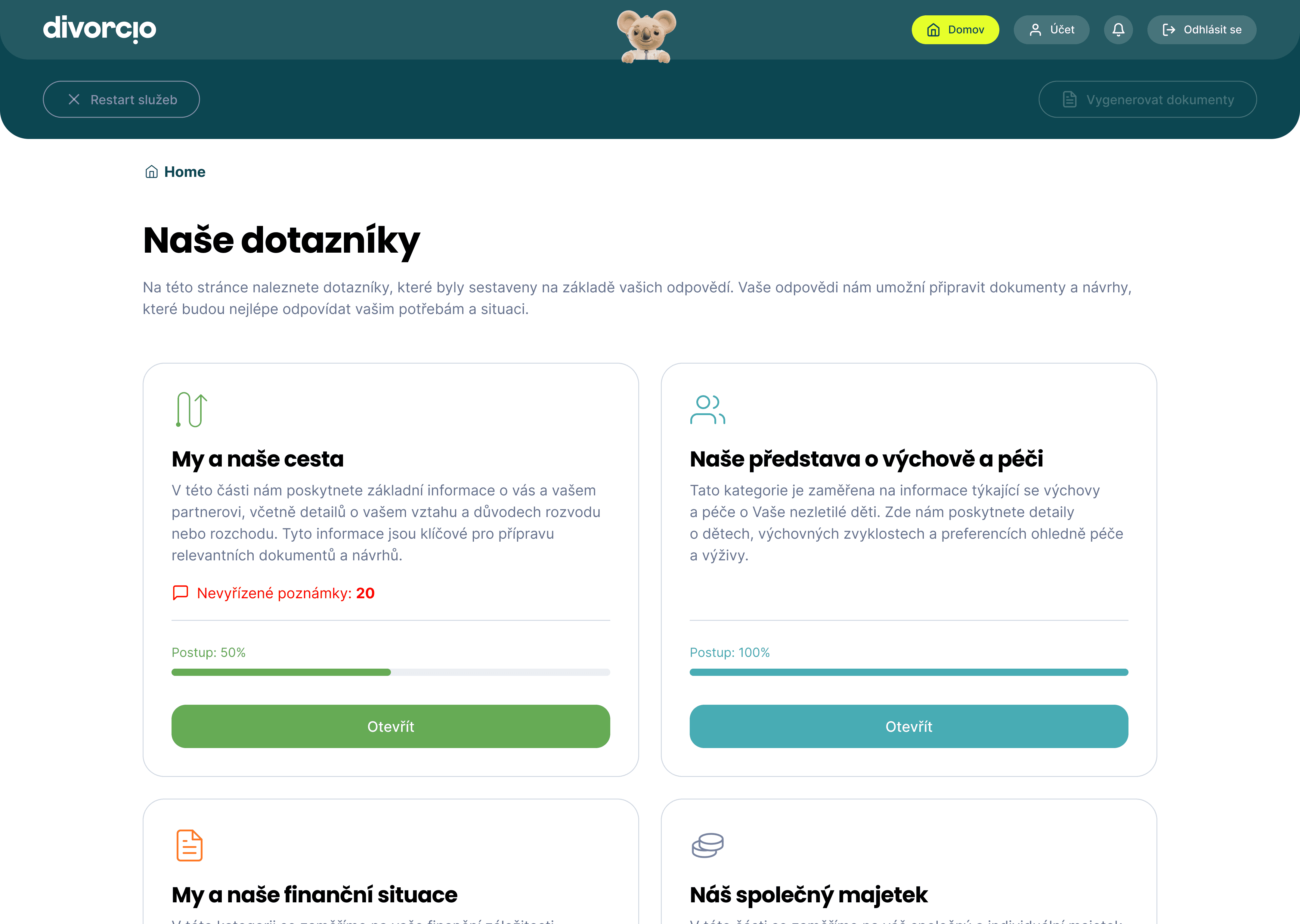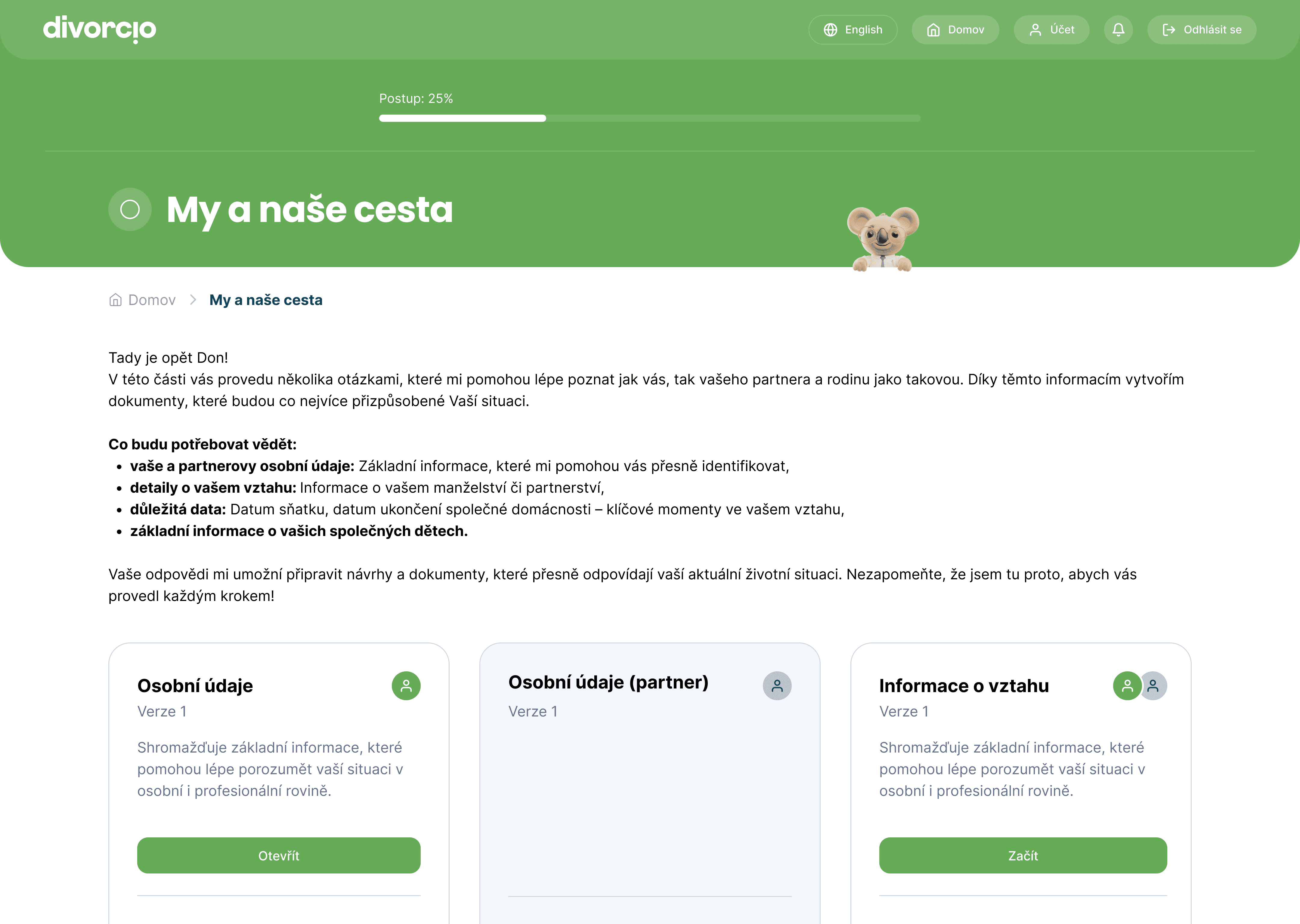 Divorcio je v tuto chvíli k dispozici zdarma v rámci pilotního provozu – chceme si ověřit, že nástroj skutečně pomáhá rodičům projít náročnou situací klidněji a srozumitelněji, ještě před jeho plným spuštěním.